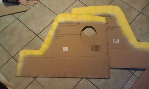 Originalmente iba a utilizar el tablero de la espuma amarilla para esto, pero fue 1. demasiado pequeña y 2. demasiado caro. Terminé usando cartón. Acaba de encontrar 2 secciones de cartón lo suficientemente grande como para cubrir todo el lado de la construcción.