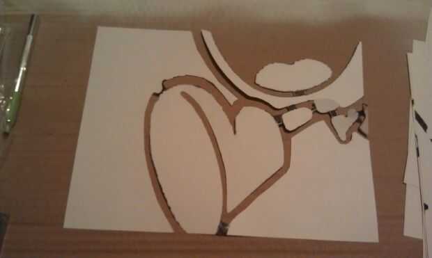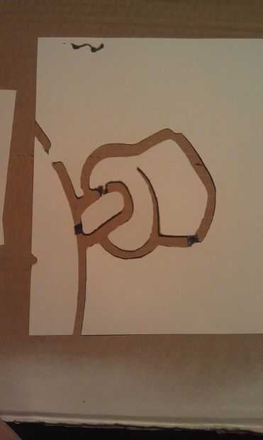 Cuando esté listo para recortar la plantilla, necesita dibujar en algunos puentes en primer lugar porque hay una gran cantidad de islas. Queremos mantener el blanco y cortar el negro. En lugares donde blanco es rodeado totalmente por el negro, necesita hacer un puente para conectar una parte de blanco a otro. Ver ejemplo en la primera selección.