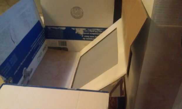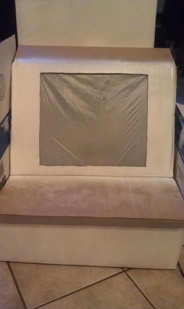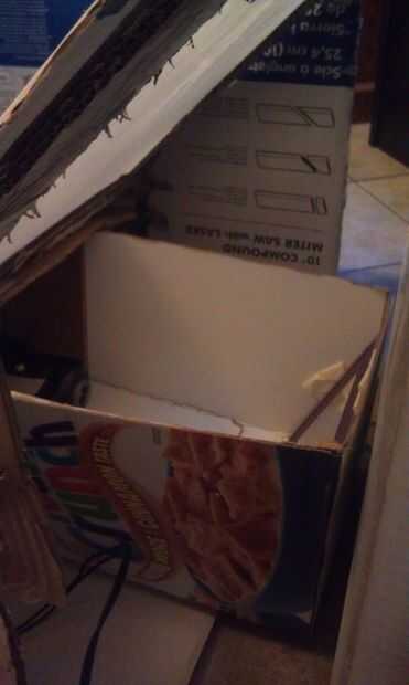 Encontrar una caja que va a funcionar. Se necesita sólo 3 lados. He utilizado el resto de la caja que utiliza para la pantalla. Debe ser tan amplia como el compartimiento del cuerpo, bastante profundo a la carcasa del proyector contra un lado con el espejo lateral de la caja de extender un poco más allá de ella. Ver foto.