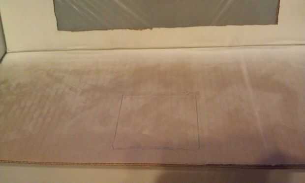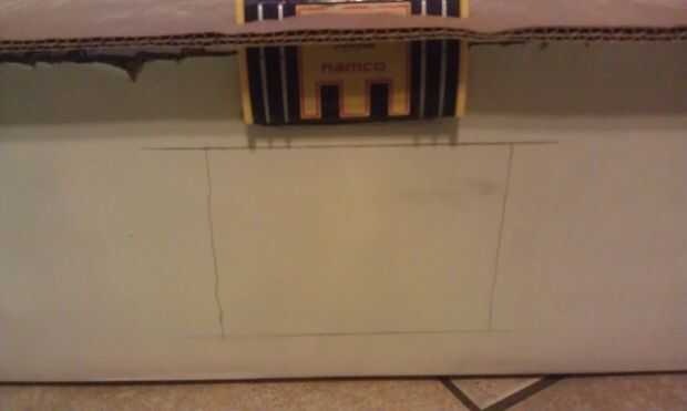 Ahora corte un rectángulo en el cuadro debajo del juego para que usted puede bajar el juego de más en el agujero.