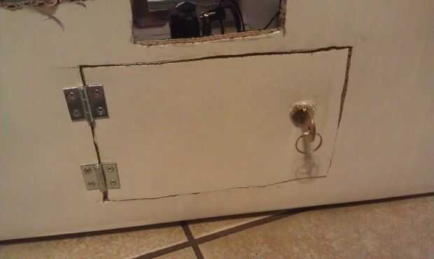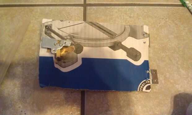 Ahora corte un agujero y agregar la cerradura y llave. Usted puede conseguir éstos en Lowe para como $4, pero tuvo la suerte de hacer por la ciudad y consiguió una usada que me han dada.