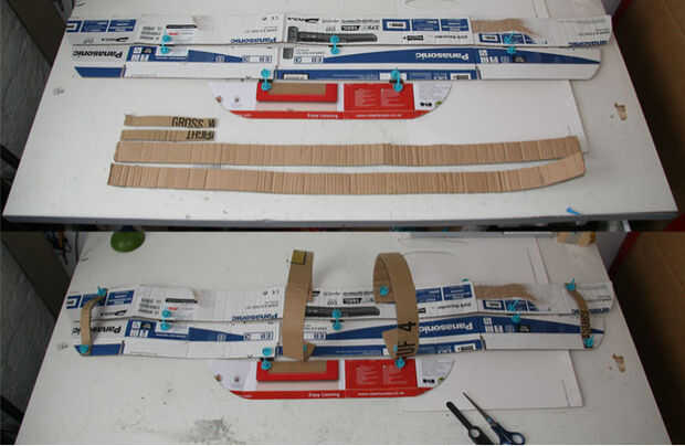 Mantenga estos sobre sus hombros y pedirle a alguien que ayude a marcar cuánto tiempo tienen que ser curva hacia atrás debajo de sus brazos para volver a unir a la estructura del ala principal.