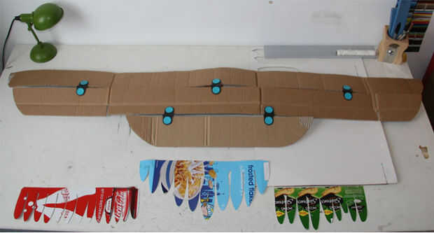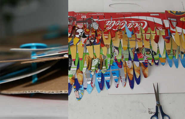 Dibujar las tiras de plumas en la parte posterior de su packging color y luego cortarlas con cuidado hacia fuera. Para obtener ese aspecto plumoso agradable, pensar en ellos como un montón de formas de letra flaco conjunta 'u'.