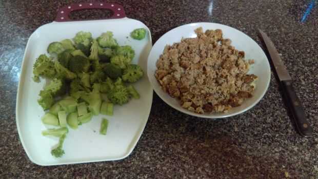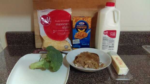Para este instructivo que voy haciendo 2 versiones. El primero será agregar brócoli fresco, pastel de carne sobrante y una mezcla de queso previamente rallado. El segundo se utiliza atún en conserva, congeladas, vegetales mixtos, queso cheddar y queso crema.
