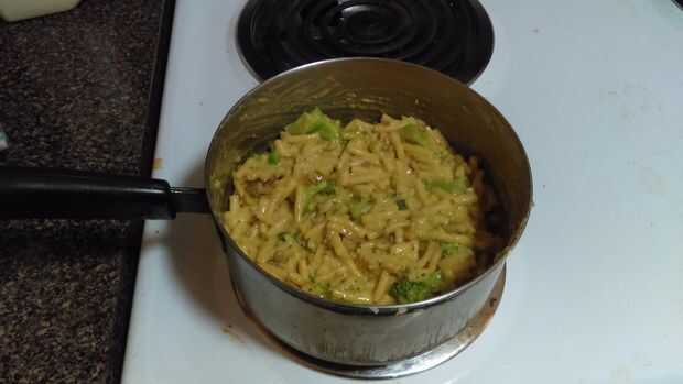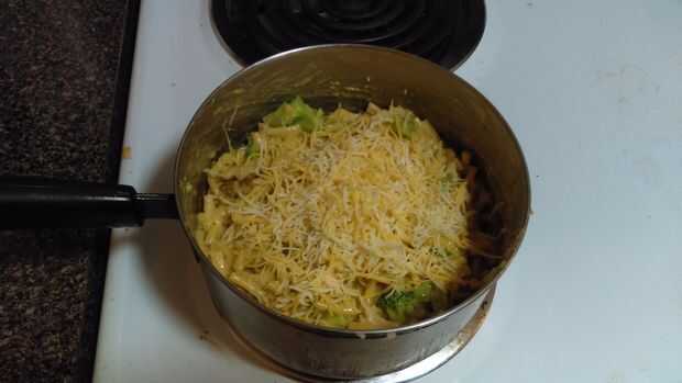 La última parte es muy rápida. Verter en la leche, añadir el queso en polvo y revuelva hasta que se forme una salsa. Añadir el queso extra y revuelva hasta que se derritan. Si no se ve lo suficientemente cursi, o si añadiste demasiada leche y se ve un poco Aguada, añadir más queso. Encontrar queso parmesano rallado es especialmente bueno para espesar salsa acuosa. Si ha agregado tanto queso que parece un poco seca o pegajosa, añadir un poco más de leche.