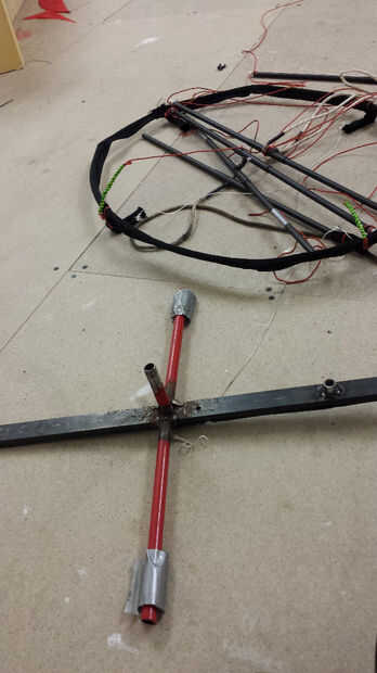 Coloque el anillo de cometa "Daisy" spinning en el suelo, viento a favor de la bicicleta. Poner un par de guijarros en superficies upwind Daisy para detenerlos de elevación. Conectar el par de escalera Cruz extremo a la manivela. Asegúrese de que la línea de elevación funciona claramente a través de la Margarita y en los rodamientos de rueda de hoja. Atar la soga de kite lift a la rueda de la lámina del rodillo...