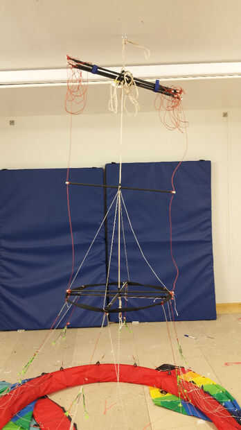 Revise de nuevo el viento. Asegúrese de sus anclas... Tal vez poner algunos más. Poner 1 en donde el ascensor que lleva es ahora y prueba la cometa de elevación independiente. Ligero de anclaje libremente fije a buey guía líneas de dirección del viento y a los lados del ascensor la cometa. (estos guardan mi Aparejo de elevación toda última vez que estuve fuera. Si puede controlar el elevador felizmente, conectar el cojinete de extremo superior de spinning lift línea y amarre de la cometa. Soltar al viento. Puede hacer esto lentamente y restringir la subida con el ancla de prueba que solo usaste y una línea hasta él.