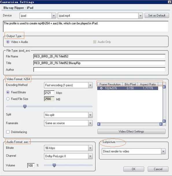personalizar tu blu-ray a iPad conversión. Podrá abrir la lista de cola y definir el perímetro detallado libremente. También puede configurar el vídeo aquí por redimensionar el tamaño de la pantalla, la barra negra de los cultivos, establecer la relación de aspecto y así sucesivamente.