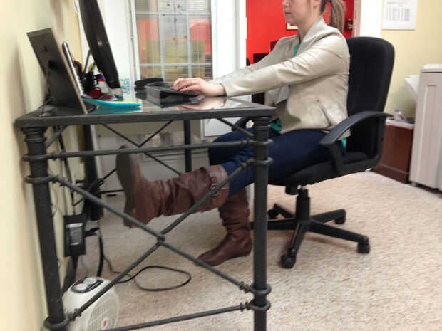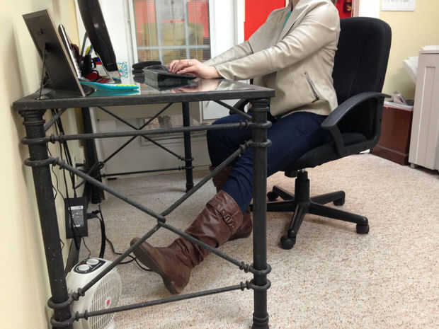 Extienda completamente una pierna debajo de su escritorio, manteniendo la otra pierna doblada en un ángulo de 90 grados con grasa de pie en el suelo. Levante la pierna extendida ligeramente, por lo que su pie es cernidos 1-2 pulgadas sobre el piso. A continuación, levante la pierna más lejos por lo que es paralelo al suelo. Bajar a posición de arranque, asegurándose de que el talón no toca el suelo. Cambiar las piernas y repita el movimiento. Completa 10 veces en cada pierna.