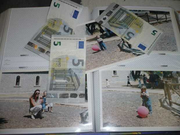 Tengo muchas fotos de mi corta edad. Así que tengo un montón de álbumes. He elegido uno. Lo tomé, lo abrí en una página, he seleccionado una foto y coloqué el dinero debajo de la foto. Cuando quieras dinero, digamos que usted quiere recordar su infancia...