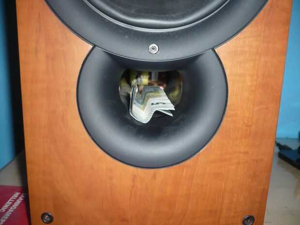 Compré la bocina el mes pasado. Tiene el agujero de la parte delantera por lo que es un gran ocultar puntos si pones la tapa en (hacer). Tomar su dinero, doblarlas y colocarlas dentro del tubo pero ten cuidado hacia fuera para no caer dentro, porque realmente es difícil llevarlos a cabo. Después de eso pero la tapa de nuevo. Ahora, si el altavoz está encima de su escritorio puede que no sea ese buen ideacause será fácil a sido descubierto. Usé este método cuando mis altavoces aquí colgado en la pared, por lo que yo estaba usando un paso taburete para llegar al hoyo.