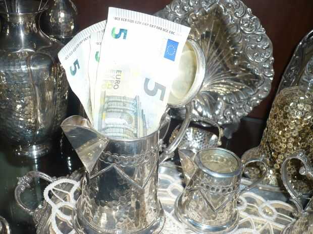 Que juego de té. Fue un regalo de mi abuela por lo que ahora se sienta en un armario con otros vasos y copas de vino. No usamos causa no beba té tan sus muy decorativo... La tetera tiene una tapa para que el contenido no es visible. Pongo mi dinero en el interior, dándole una ventaja a ser brillante, cerré la puerta del armario y ahora puedo ir y beber una taza de café caliente. No mucho de un lugar oculto en Gran Bretaña...
