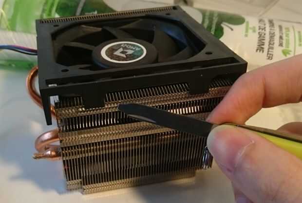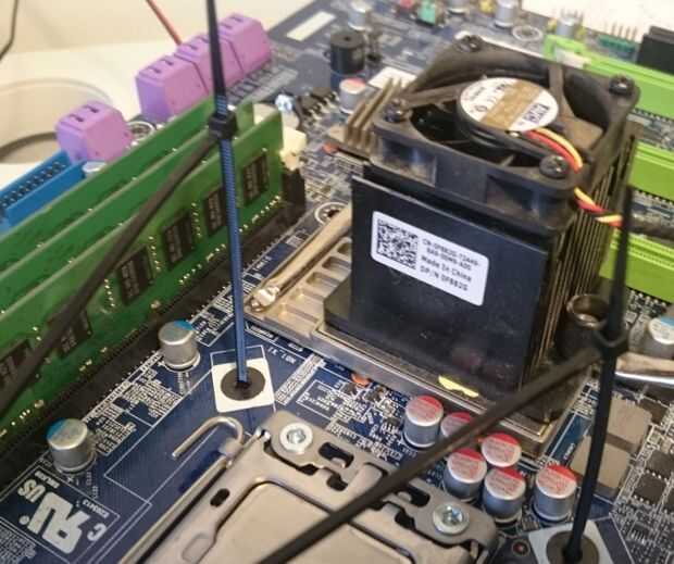 - Tire de la zipties a través de tubos de cobre del disipador térmico. La segunda zipties deben ser capaces de ajustarse perfectamente a través de la línea de las aletas.