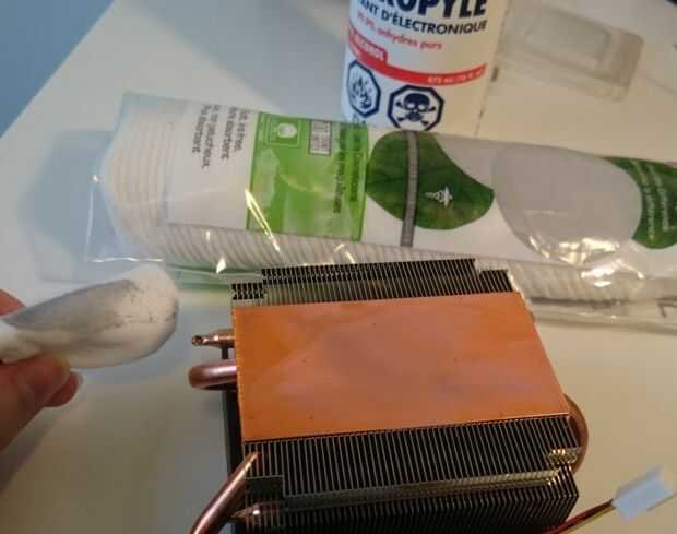 En primer lugar, ligeramente mojado una almohadilla de algodón con alcohol isopropílico y limpie cualquier suciedad de pasta térmica que pueda quedar en su CPU o disipador de calor. No tenga miedo de usar un montón de cojines de algodón hacerlo realmente limpio. Si su madre está todavía dentro de un caso, retire antes de comenzar el proceso de montaje.