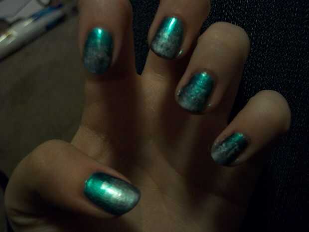 Desde la punta de la uña. Aplicar el esmalte de uñas relativamente grueso en el extremo de sus uñas y disminuyen poco a poco como usted trabaja su manera hasta la base de cada uña. Normalmente este paso funciona mejor si dab en la pintura como disminuyen. Esta técnica le da una sensación helada o fría, añadiendo un extra poco de textura.