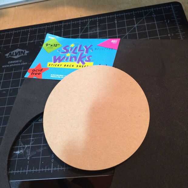 Con la espuma nuevo negra pegajosa, corte un círculo ligeramente más pequeño que la circunferencia de la parte inferior de la pieza.