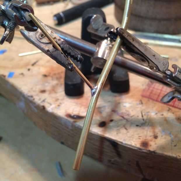 La soldadura en la primera pieza de la rama de la hoja al tallo. Si usted la soldadura en un ángulo, no tienes que probar y doblar de esa manera más adelante.