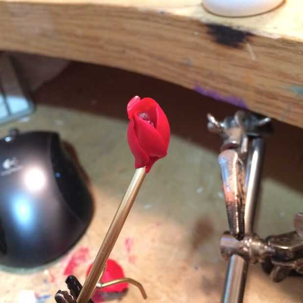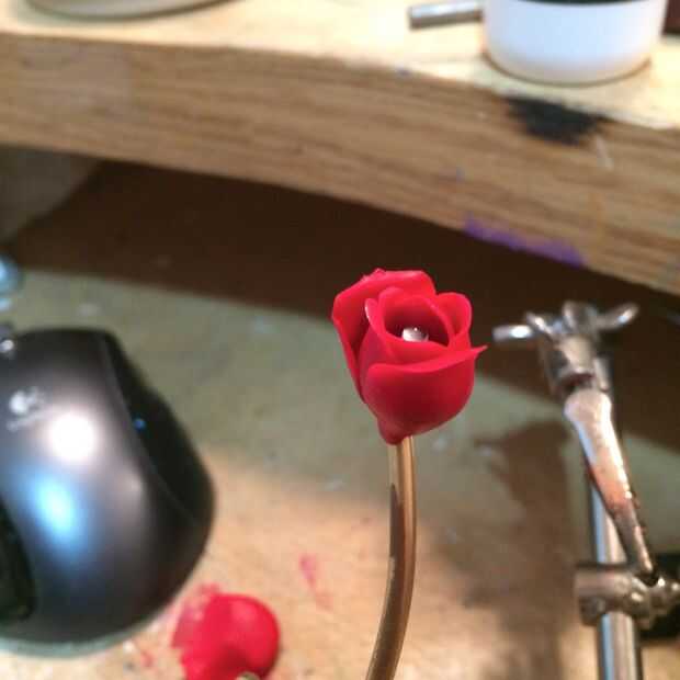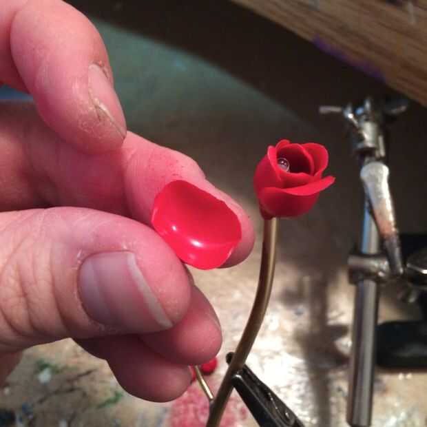 Repita con el resto de los pétalos, asegurándose de que se superpongan las costuras de cada capa. También puede flare a la punta del pétalo para darle un aspecto más realista.