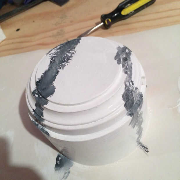Empape el pincel con agua y luego cubrir la base de una capa base blanca mojada otra vez. Mientras que la capa base húmeda está todavía húmeda, añadir un poco negro a pincel (no te preocupes limpieza hacia fuera). Toque el cepillo para crear dos venas de tamaño medianas a través de la base.