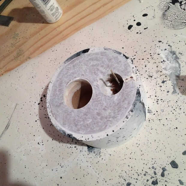 Una vez seca la base, separar la parte superior de la parte inferior de la base y dejar de lado la parte superior. En la sección de la base que ninguna pintura, base hacia fuera pintura blanca sin representa sobre la base previamente pintada.
