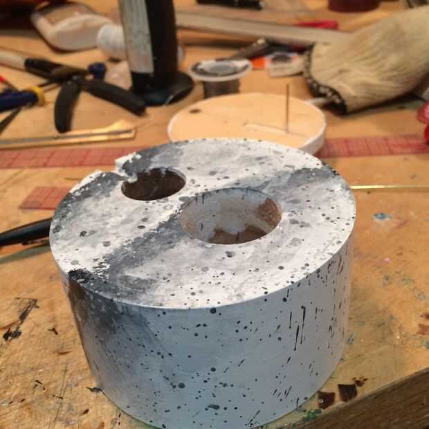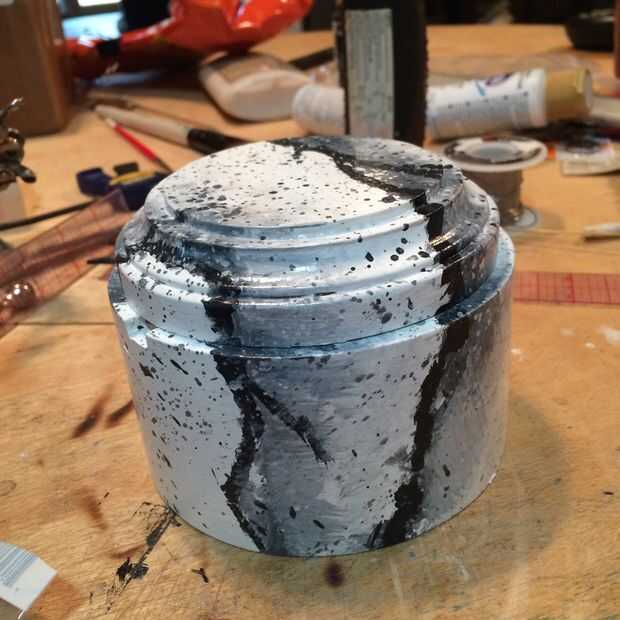 Una vez que la base esté completamente seca, volver a montar y luego rocíe con la capa transparente de brillo y deje que se seque. Una vez que esté seco, separar las partes base otra vez y cubrir la parte superior de la parte inferior de la mitad de la base. Deje que se seque.