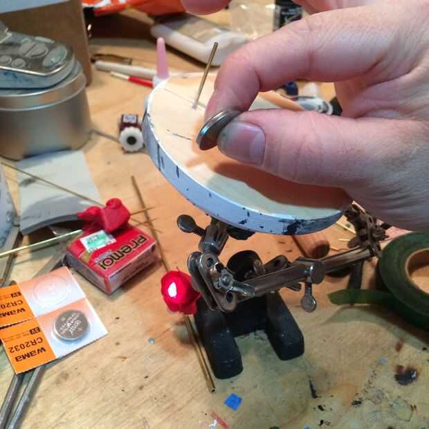 La tira trasera 1/4" del revestimiento de cables. Luego tome una 2032 3V batería y aferrarse a los cables, uno a cada lado. Estamos tratando de establecer qué lado es positivo. Si el LED no enciende, cambie los cables alrededor. Una vez que hayas establecido qué lado es positivo, márquelo con un rotulador o algo así que usted puede recordar que uno es.