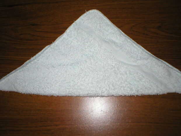 Doblar la toalla un a un triángulo.