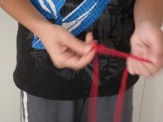 Tire de ambos lados de las cuerdas hasta que el bucle es cebada visible, pero tenga cuidado de no tirar demasiado, o se derrumbará el nudo! Mantenerlo para que sea vertical y rápidamente Deslice su mano hacia abajo; el nudo se disolverá por arte de magia!