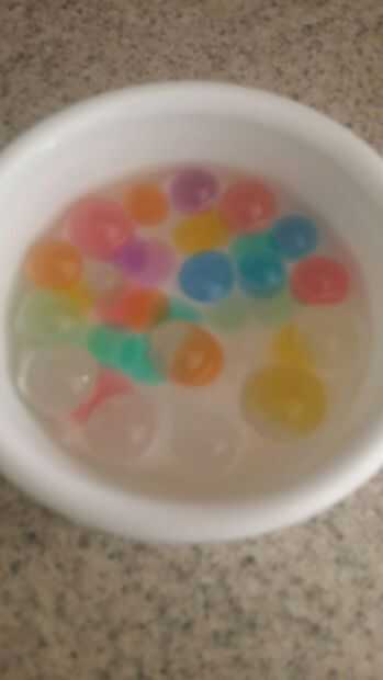 Como usted puede o no puede saber usted ponga las bolas de polímero en agua y los deja absorber tanto como son capaces de mantener hasta terminar con las bolas muy bien redondeadas, mucho más grandes. Yo mío deje reposar durante la noche desde que puso en tarde y despertó a exactamente lo que esperaba.
