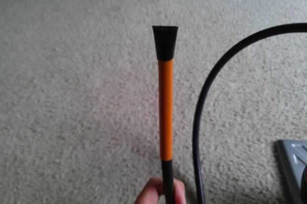 Para "cargar" un cohete paja, simplemente tomar la paja y deslice el extremo abierto en la manguera de la bomba.