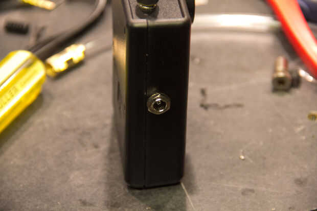 La caja tiene un panel de delante desprendible que taladrar los agujeros el Jack 3,5 mm, 2,5 mm jack y potencia el botón. Tenga cuidado al perforar los agujeros más grandes, utilice un paso poco, o arrancar con un poco más pequeño y su forma de trabajo, de lo contrario corre el riesgo de romperla (que estúpido).