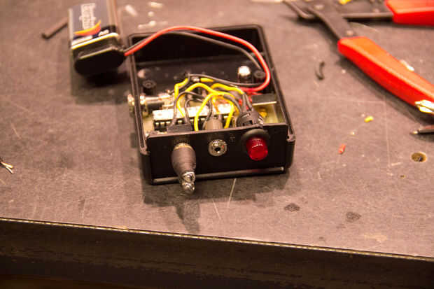Una nota para el compartimento de la caja de este proyecto específico. Una batería de 9v es suelta en el compartimiento, utilicé un pedazo de espuma tipo material que tenía y caliente lo pegado a la parte inferior del compartimiento. Esto dio un buen ajuste cuando se cierra la puerta de la batería. No quieres que tu batería rebotando ahí.