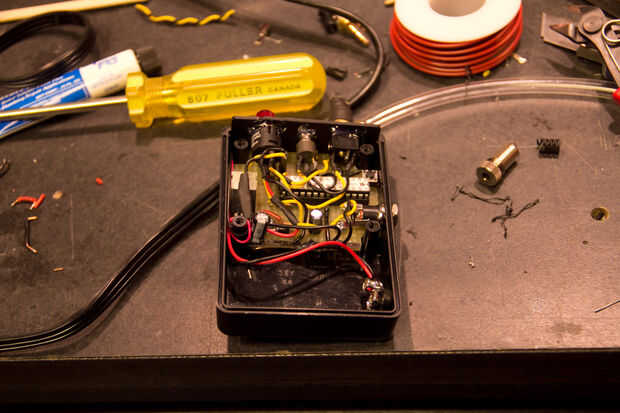 También hice que para pegamento caliente los conectores y el interruptor y cableado que podría obtener tiró en cuando cambie la batería para que sea más durable en el campo.