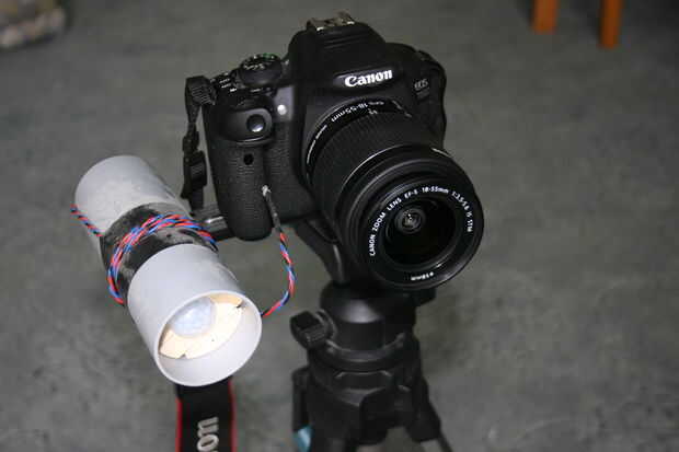 La forma de obras de este proyecto son en primer lugar utilizando una unidad estándar del PIR que le da una salida cuando se detecta movimiento, entonces el Arduino Nano da un código IR a disparar la cámara de Canon.