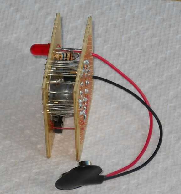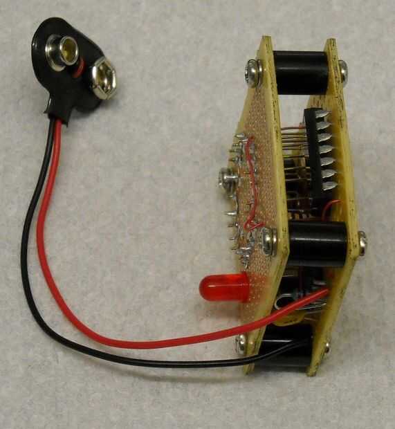 También se muestra en ambas fotos se sacude en el proyecto para facilitar la demostración de algunos circuitos auxiliares. El add en circuito es otra cosa que un temporizador 555 en modo monoestable con un LED rojo para la salida visual para mostrar cuando las salidas del sensor. Como este circuito temporizador puede desde Google (y encontrado en libros de datos que se remonta a desde que estaba en la escuela secundaria) no detallo aquí esa parte. Pero como referencia, estas son las partes que solía construido ese circuito también.