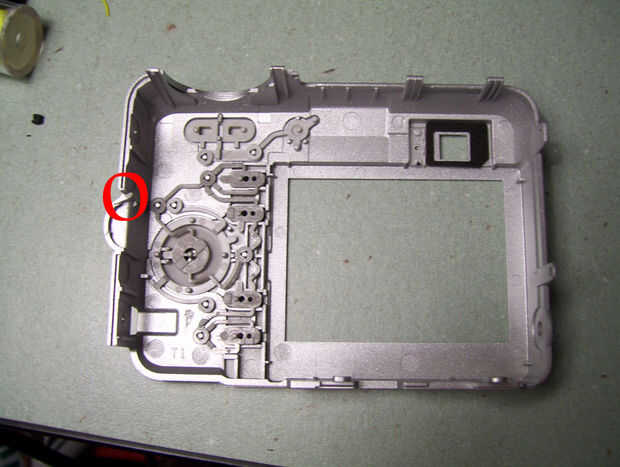 5) vuelva a colocar la parte posterior de la cámara, y todos los tornillos retirados anteriormente.