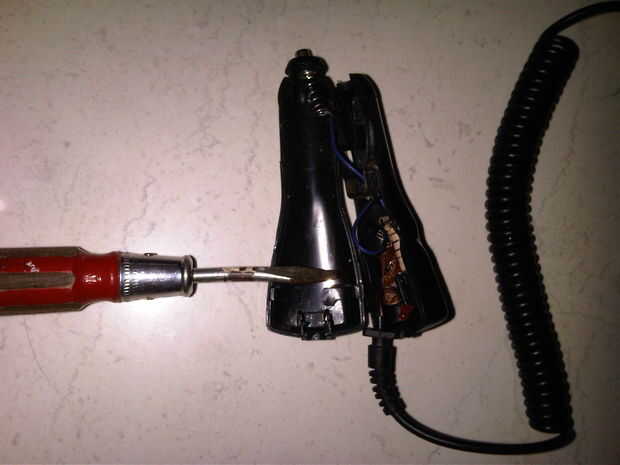 Si tienes viejo/usado cargador de coche no tire en la basura. Usted puede hacer un proyecto de bricolaje como yo lo hice... Lo primero que debe abrir el cargador de coche... y cortar el cable para tablero pequeño, utiliza diferentes imagen de cargador de coche para hacerlo, lo compré por casi 10,000 rupias (1 USD) para el artículo 4 de la causa.
