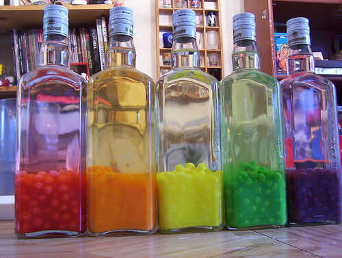 Dar a cada botella una buena sacudida para iniciar el proceso de disolución. Debería ver el líquido comienza a color relativamente rápidamente.
