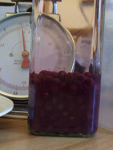 Ordenar los bolos en diferentes tazones basado en color. Nos pesa nuestra con una escala para asegurarse de que tuvimos aproximadamente la misma cantidad para cada botella (180 gramos).