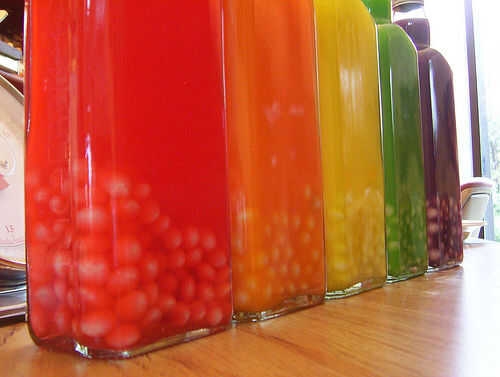 Con el tiempo el vodka comenzará a tomar el color de los bolos, mientras que los cuerpos de Skittle se vuelvan blancos y comienzan a romperse aparte.