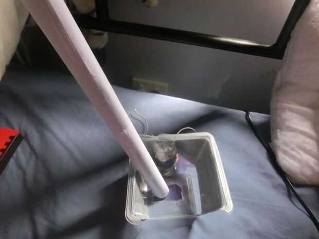 Conecte el motor a un recipiente con cinta adhesiva y luego corte un agujero en el fondo del recipiente con un cuchillo para que se alinea con el agujero rectangular de corte del disco. Sólo podría llenar el recipiente con el caramelo pero mina mantenido conseguir pegado y cuando llegué más pequeño caramelo todos simplemente cayó hacia fuera a la vez no dejando más dulces para cualquier persona. Para fijar que he utilizado huevos de Pascua porque no tengo dulces maíz donde vivo y me envolvió un trozo de papel en un tubo de alrededor de un huevo de Pascua y luego con cinta el papel hacia abajo. Caliente pegué el rollo de papel en el contenedor plástico directamente sobre el orificio en el recipiente, pero cuidando de no caliente pegamento en el disco.