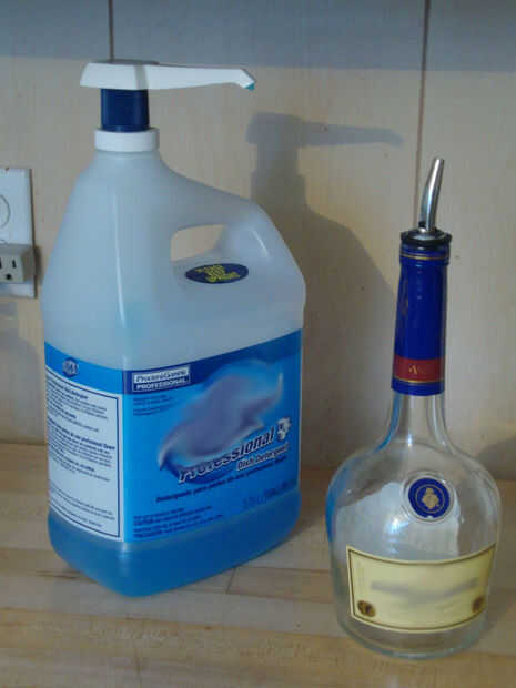 Vi un dispensador de jabón de Jack Daniels hace unas semanas en algún lugar en internet y que quería hacer uno yo mismo. Este proyecto es fácil de hacer y en mi opinión el resultado se ve muy bien.Lo que usted necesita:-algunas botellas viejas, prefe