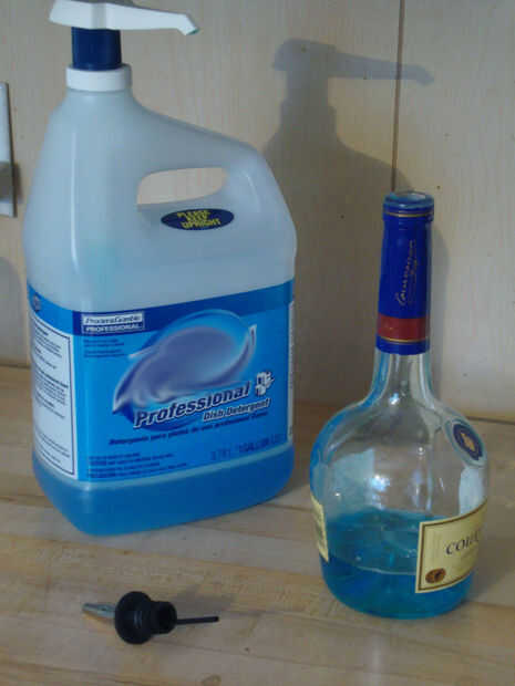 Vi un dispensador de jabón de Jack Daniels hace unas semanas en algún lugar en internet y que quería hacer uno yo mismo. Este proyecto es fácil de hacer y en mi opinión el resultado se ve muy bien.Lo que usted necesita:-algunas botellas viejas, prefe