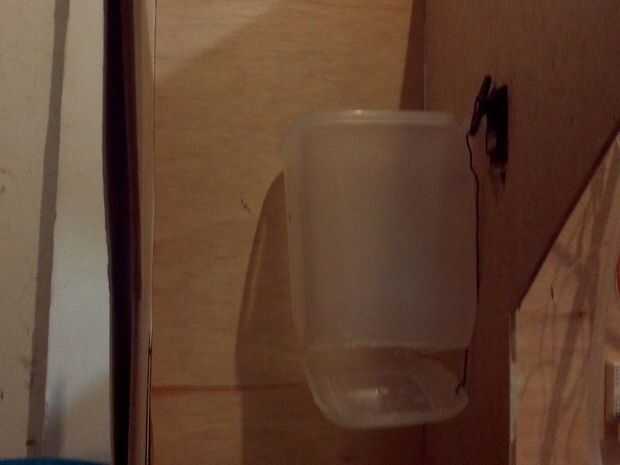 Lo hice utilizando un plástico del tazón de fuente que i cortada la parte inferior lateral y atamos un alambre resistente al servo, así cuando el servo mueve cierto ángulo, la parte inferior también mueve permitiendo que las gotas de alimento para aproximadamente dos segundos, después el servo llega a la posición original y se cierra la brecha.