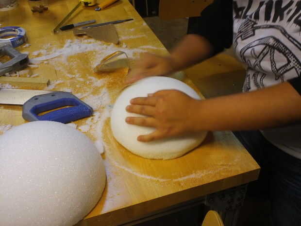 El siguiente es pulir la parte exterior de la cabeza para conseguir la media esfera del mismo diámetro que el recipiente del cuerpo principal. Este paso puede verse en cuadro dos.