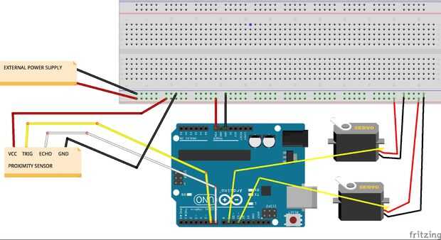 Usted necesitará un arduino Uno o similar para el control de todo. Ahora que sabes qué piezas van a avanzar en su proyecto puede decidir qué motores y sensores a utilizar. Para mi proyecto necesitaba dos servomotores. Un motor pequeño para caber dentro del dispensador de la bola, el otro servo fue un gran servo para girar al dispensador de todo. Yo sabía que mi servo grande iba a necesitar un externo fuente de alimentación debido a la corriente. Esta fuente de alimentación debe ser de 5V y 1A. Encontré un viejo barril cargador para una camara vieja que no tenía ya así que cortar el conector y soldar en las patillas a los cables positivos y negativos. También, debido a los requerimientos del proyecto que necesitaba tener un sensor de proximidad conectado así, mover mi dispensador de la bola.