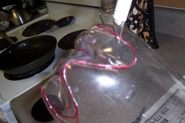 Siguiendo los contornos de la parte inferior de la botella, marcan un patrón de las estrella. Luego dibujar un pequeño círculo alrededor de la base de la parte superior.
