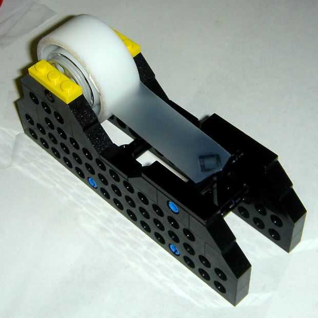 Es un dispensador de cinta de KVG que utiliza no muchas piezas. la cinta se desliza sobre 2 engranajes gris agradables y sin problemas.Pros...no muchas piezas usadosse ve biendivertido de usarContras...quizás tenga que utilizar unas tijeras o algo pa