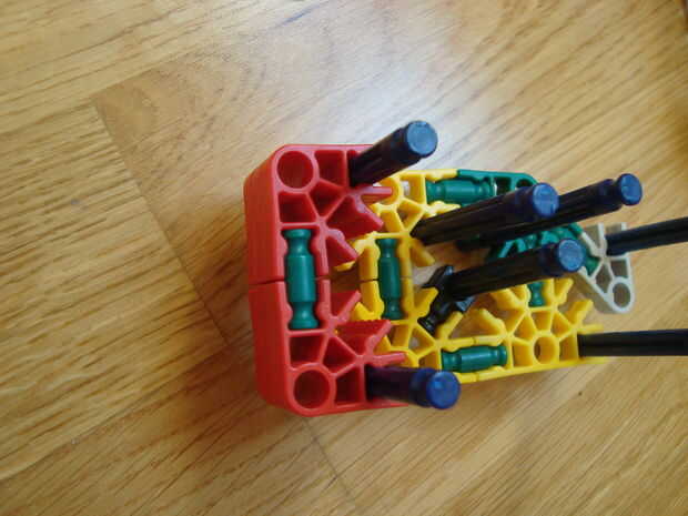 es un dispensador de cinta hecho únicamente con piezas de Lego, excepto la cinta sí mismo. Incluso corta utilizando una pieza de Lego. Hay un video explicando el montaje completo y funciona! También una ingeniosa pequeña historia sobre por qué constr