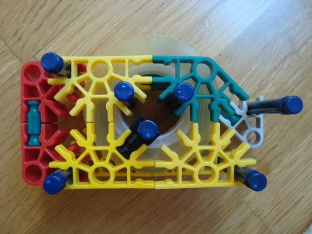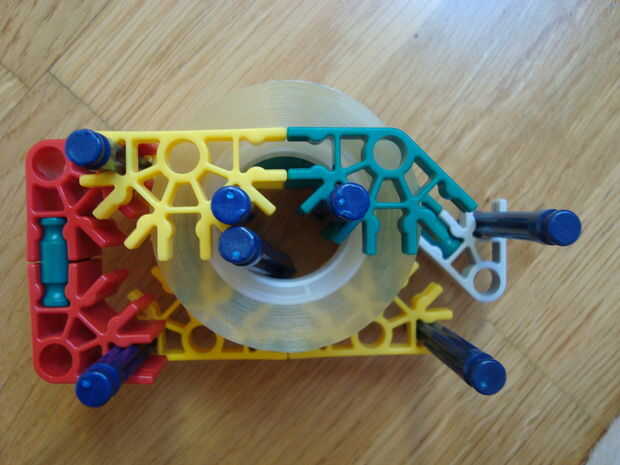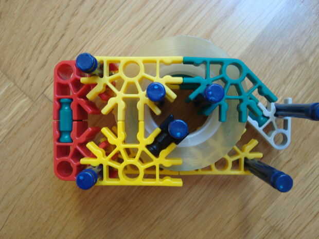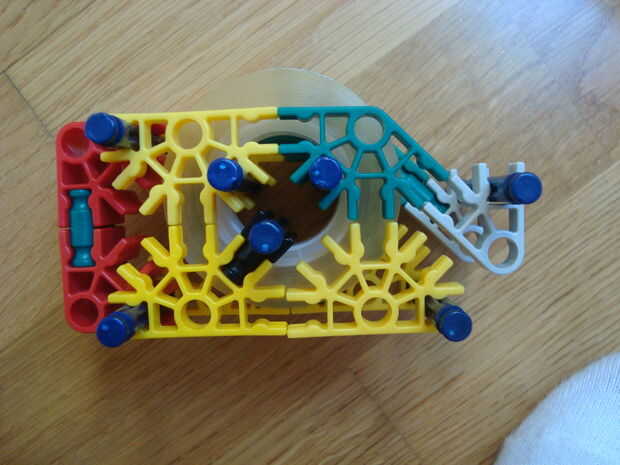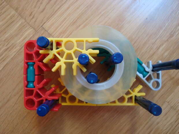 3: Añadir un conector amarillo con un clip y sobre las dos varillas azules se muestra.